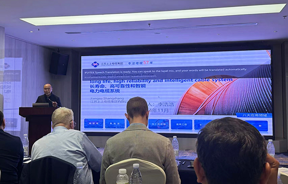 上上電纜技術代表李浩浩受邀代表聯合研制項目組作了《長壽命、高可靠和智能化電力電纜系統》的主題報告,報告深入剖析了目前中壓電力電纜面臨的挑戰,針對產品實際使用工況,提出了一種新穎的中壓電力電纜結構設計,該產品具有高可靠性、長壽命和智能化的特點,為城市地下輸電系統提供安全可靠、高性價比的電力傳輸線路方案;報告對產品設計、制造、測試技術和狀態評估等方面研究成果、產品工程實際應用進行介紹交流,引發了與會代表的關注與討論。