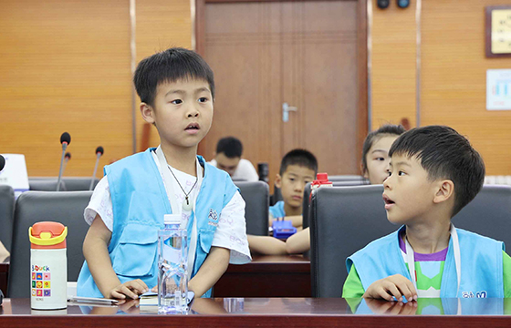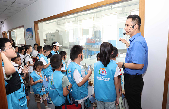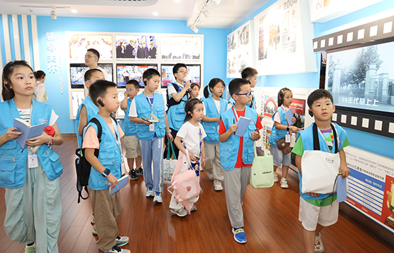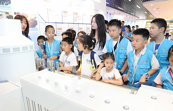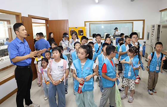 活動第二站——上上展廳,開啟了小記者們對上上發展史的探索之旅。小記者們通過歷史照片、影像資料和榮譽獎牌,全面了解上上電纜58年的奮斗歷程。當解說員介紹到上上的企業規模時,“上上電纜真的是(全球絕緣線纜企業規模排名)中國第一全球第七嗎?我不信!” 起初充滿質疑,但隨著一塊塊獎牌、一座座獎杯的展示,他們的疑問逐漸轉化為驚嘆。連續三屆榮獲中國質量獎提名獎、自主研發的全球絕緣線纜電壓等級最高——750kV交聯聚乙烯絕緣電力電纜、填補世界空白的三代核電纜……這些硬核實力是上上58年奮斗的成果?!拔覀冧嚓栠@么小小的縣城,居然能孕育出規模這么大的企業,上上真了不起!”小記者們真切感受到家鄉企業的非凡實力。